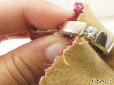 如果你的戒指被常见的化妆品弄脏了或者只是沾染灰尘,那么下面这个方法能让戒指焕然一新。首先装一盆温水并滴入清洁剂(肥皂水、沐浴露等),将戒指浸泡约20至40分钟。然后用一支细软的牙刷轻轻刷拭钻石以及细节部分,再用干净的温水冲掉泡沫,如果觉得清洗不够干净可以重复上面的动作两至三遍。