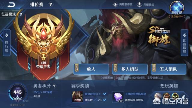 我也是从很早之前就开玩的,当时还没有至尊星耀这个段位,打到钻石段位的时候大概场次一共是800多场,是s7赛季的时候上的,而之前玩王者荣耀都是随便打打的,基本只玩玩排位,在这之前我主要玩腾讯的另一个游戏,叫全民超神,当时几个英雄都有了5级宝石套,但是实在游戏不给力,最后第8个月没更新的时候我退游来到了王者荣耀。当时也是单排,然后就没继续上分了,后面因为种种原因,每个赛季排位也就打个1、200把,上到王者以下的那个段位就不打了,这个赛季因为学校事情变少了,轻松了点,200把上了次王者