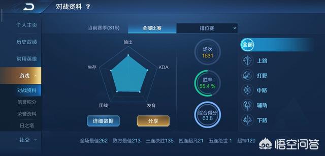 总场次4529场,上过一次王者,数据不是很亮眼,但是也是达到了基本水平吧,分基本上都是单排上的,我个人是比较喜欢单排,因为每当想一起上分的时候朋友们基本不在线,当朋友们一起上分的时候我又基本不在线,后来逐渐习惯单排以后基本都是单排了,没那么多麻烦,没必要提前准备,就是匹配到的队友参差不齐,有时候很好、有时候很差、有时候心态很好鼓励队友、有时候心态很差开场骂人,也因为种种甚至想过退游,但是想想又不舍得,毕竟这么久以来还是有感情的,而且随着学业上越来越繁重,也没有别的时间熟悉其他游戏了,在自己了解的游戏内,课余闲时打上一两把,其实还是比较放松的。
