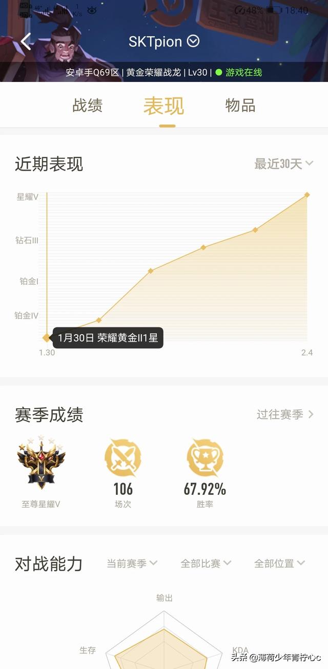 如果说当前赛季总场次700场达到钻石二段位只能说实力一般般吧,如果说你是从零开始游戏理解可能比平常人稍微好一点点,如果之前玩过类似的moba游戏,那么这个表现真的很平常。