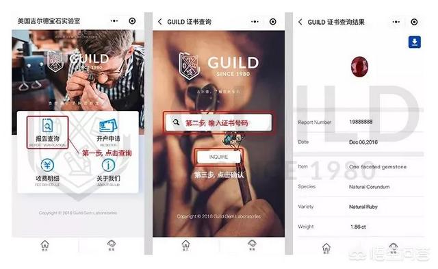 证书查询GUILD宝石鉴定证书不仅专业,更是做到了全球范围内的证书可查询。