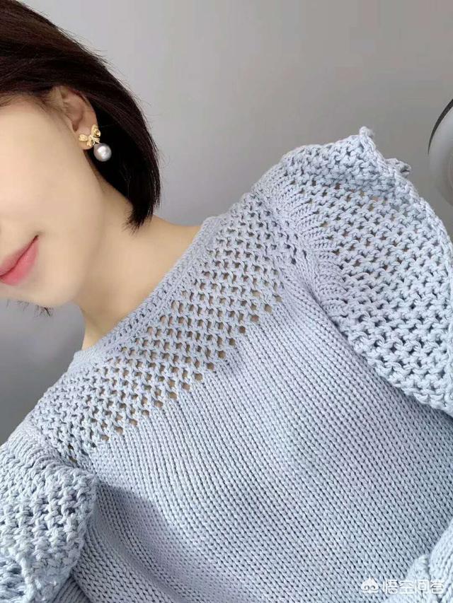 蝴蝶结耳环是女孩无法抗拒的美丽饰物,黑色的珍珠透出很强的光感,佩戴在耳朵上把你高贵的气质尽情突显出来,很有女人味的一款耳环,这款耳环搭配上镂空的浅蓝色毛衣举手投足展现甜美气质,点缀知性女人的小清新风范。