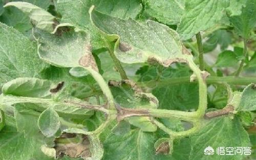 早疫病发生首先会为害植株底部叶片,逐渐向上蔓延。病斑最初是针尖大小的黑点,逐渐发展扩大为黑褐色病斑。若早疫病发病严重的话,病斑它是会扩大进而殃及整株,从而使植株失去叶片功能,造成叶片变黄干枯,影响番茄正常的生长发育。