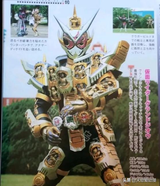 可怜的崇皇,设定这么强,却老是被迫害拥有平成二十骑士力量的崇皇时王 ,可以任意召唤他们。集合全平成骑士战力于一身,可以随意使用任意骑士的武器,大招可以召唤任何刑态的骑士,包括最终形态。入手了20个驾驭表盘的时王,使用Grand表盘所变身的究极形态,其名为:假面骑士Grand Zi-O!假面骑士Grand Zi-O:集全平成骑士的战力·能力于一身,召唤空我-build等历代战士,齐心协力与异质骑士对决!