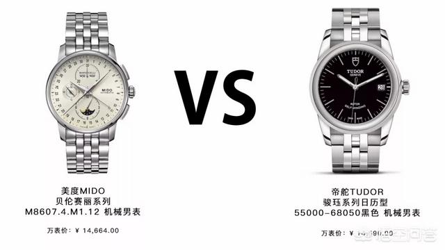 如果问美度哪个系列性价比高,真的不好说,从最初的贝伦赛丽系列到海洋之星系列,十多个系列,每个系列都各有千秋。但如果非要选一个的话,我选择贝伦赛丽系列。就拿美度MIDO-贝伦赛丽系列M8607.4.M1.12 机械男表和帝舵TUDOR-骏珏系列日历型55000-68050黑色自动机械男表做比较。