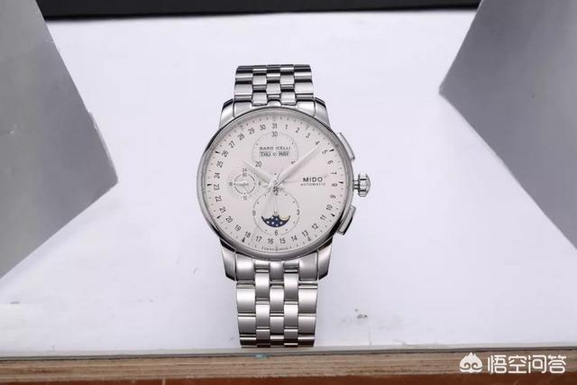 美度的这款将多种常见功能集合于一身,拥有星期、日期、月份、月相、30分钟计时、12小时计时等功能,一万多的价格能够享受到最大限度的复杂机械腕表的乐趣,可以说是非常亲民了。