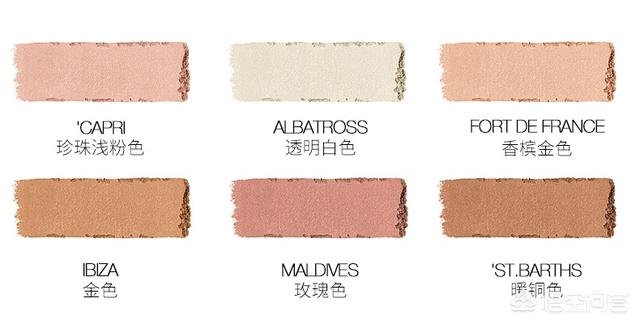 虽然粉质细腻度不出色,但是不太显毛孔,星光感较强一点,适合喜欢星光感高光的人群,晚间使用很有存在感!Albatross透明白色与Capri珍珠浅粉色比较适合肤色白皙的人使用,Fort De France是适合黄皮使用的香槟金色,Ibiza金色与