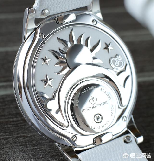 要转换这道窗外风景也很简单,轻轻向下一压,小配饰便会脱离。由于每件小配饰的边缘设有三颗滚珠接合表壳,故虽容易替换,但也不用担心其容易松脱掉下。而小配饰背后还镌刻了日月图案作呼应,设计细腻精湛。