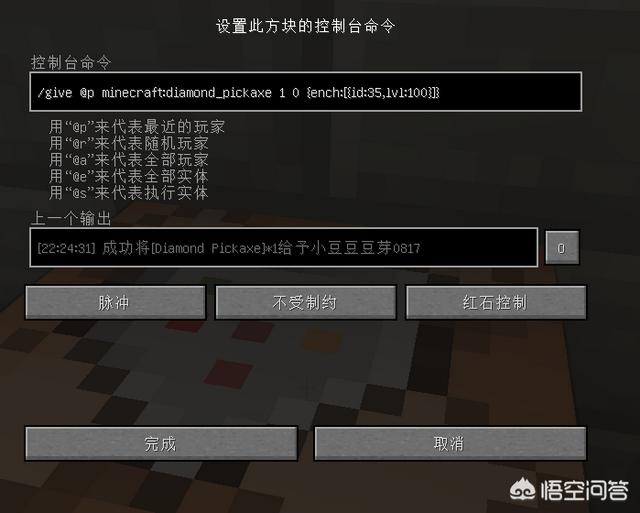 ②在创造模式且有OP权限时右键命令方块打开编辑指令界面