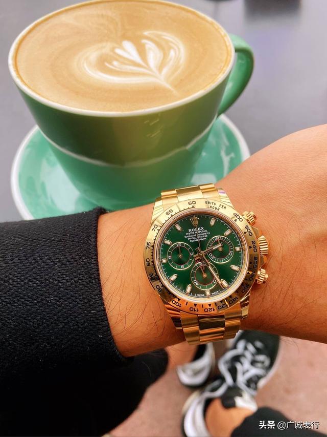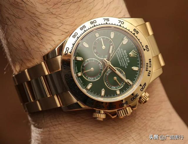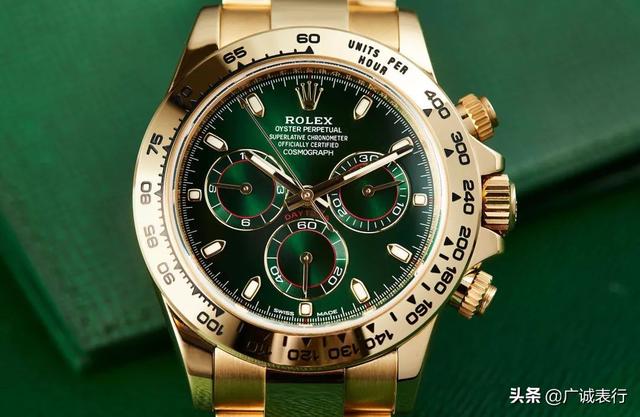 劳力士的迪通拿系列也可以说是如今最热门的系列之一,迪通拿在最开始是劳力士为了满足专业耐力赛车手的计时需要而设计的,这款标志性腕表与赛车世界所追求的性能与卓越表现如出一辙,迪通拿系列从196年问世到现在,依然在运动计时腕表领域中占一重要席位。这款绿金迪系列,在前两年也被炒的非常的火爆,深受广大表友的喜爱,价格一路飞升,下面就来简单介绍一下这款劳力士的绿金迪! 这款金绿迪和劳力士一直很火热的绿水鬼有点异曲同工之处,突破了以往的常规素色,取代而之的是一抹泌人心脾的绿色,非常的独特耀眼,从整体外观来看的颜色配色就金色和绿色,简单大气又极其的奢华,深受很多人的喜爱。金绿迪的材质是18t黄金,高性能测试计表圈也是有18t黄金打造而成。 仔细的看看它的盘面,独特的深绿色表盘,非常的漂亮,12点钟位置的刻度采用了劳力士的经典小皇冠,在皇冠下面是劳力士的英文字样和字母。迪通拿计时腕表最大的特点就是表盘上的三个小表圈,像熊猫的眼睛,类似于“熊猫盘”就是颜色的差异。3点钟和9点钟位置的是计时小表圈,6点钟位置的是小秒圈;在三个小表圈的内侧采用了红色的线条。表冠上还有两个按钮,上方按钮是计时的开始和暂停,下方的按钮是计时复位键。 内部搭载的是劳力士的4130型自动上链计时机芯,这款机芯是由劳力士自主研发生产的。其组装数量远远少于一般的计时器,进而使得机芯更加可靠。如同劳力士的所有机芯一样,4130型机芯也获得了瑞士官方鉴定认可时计认证。此机芯配备了Parachrom游丝,有助抵抗撞击及温度变化所带的影响,动力储存大约有72个小时。 这款腕表总的来说,除了价格稍微贵了一些,其他地方也没什么不好的地方。不过可能有些人觉得全是黄金,显得比较俗气,这种就是主要个人的喜好了。(图片cr网络,侵删) |