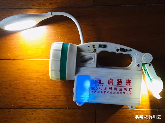 装满锂电的台灯,取代质差的4V铅电池,里面装了手机充电器的电板,直接插220V充电、