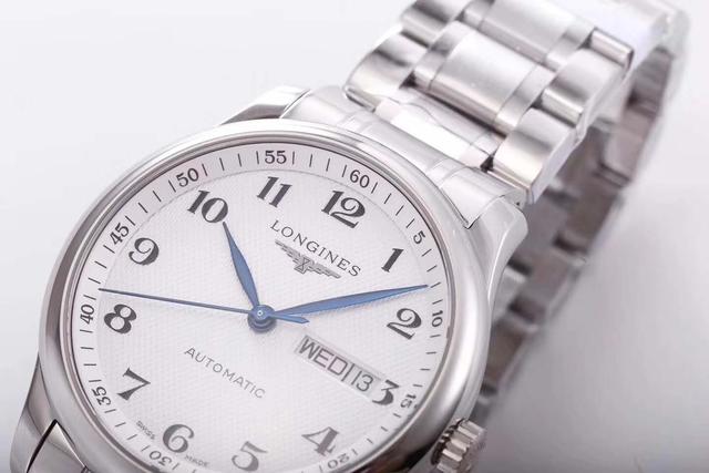 浪琴旗下最让我印象深刻的就是名匠系列手表,古典、雅致的风格可以说是同级别品牌模仿的对象。这只表采用316L不锈钢打造,直径为38.5mm,表盘采用麦穗纹装饰,增加了表盘质感与视觉效果,搭载海鸥2836全自动上链机芯,配不锈钢表带。