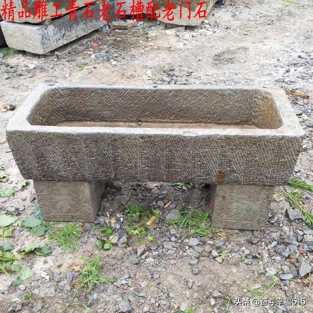 农村的旧石槽一般在九十年代以前是用来喂猪,喂性口用的,它有的是长方形石槽,有一种圆堆形的石槽是过去用碾米用的,这些古老的石槽基本上进入了每家每户,村村寨寨都离不开它,是农民群众生活用具和养畜装食的必需品。随着时代的发展和社会的进步,在农村石槽失去了作用和价值。有些收藏爱好者,并逐渐走进了对石糟收藏行业,对石槽而言,它代表对社会的进步和历史的回忆,对中华文化传统造型艺术的肯定,对石槽是有一定的升值空间。