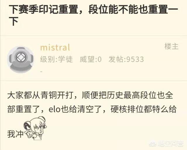 现在官方要将S17赛季印记重置,让玩家们感到一丝丝安慰,但是这并不足以解决根本问题,所以很多人都要求官方将段位也都进行重置,建议官方将所有玩家的段位都降到青铜,然后各凭实力进行上分,将浑水摸鱼的玩家打回原形,这样能让在低段位炸鱼的大神玩家更加轻松的回归该有段位,同时游戏环境也能走向正轨,无论是对官方还是玩家,从长远角度上来讲,都是利大于弊的。