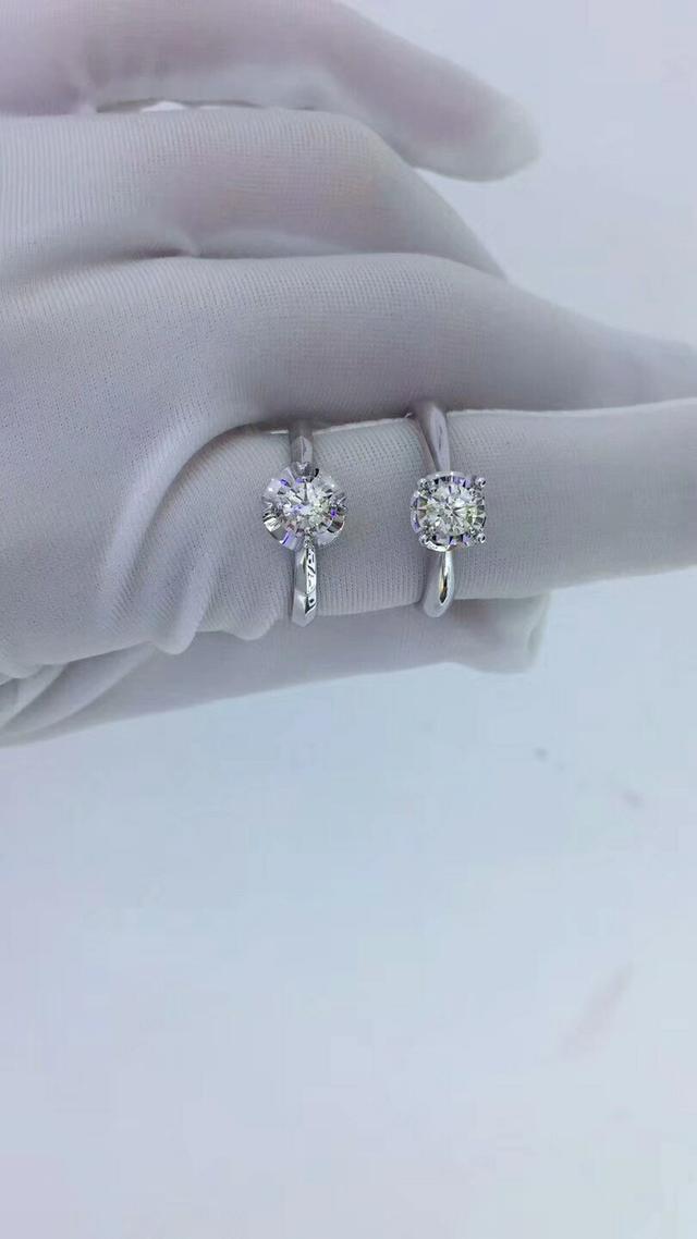 (3)颜色:镶嵌钻石的颜色。一般来说镶嵌钻石的颜色和裸钻相比,由于有托架颜色影响,所以有上下1个等级的区别是正常的。