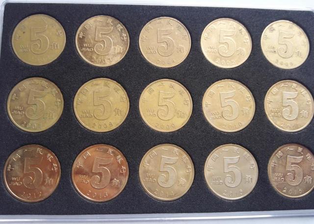 曾经有无厘头的“都市传说”说梅花5叫内含有黄金,当然这是无稽之谈。但从新旧两版5角硬币颜色异同上也反映出铸币材质的不同,梅花5角为铜锌合金,颜色偏金黄一些(可能也是传说含金的缘由);荷花5角是钢芯镀铜合金,颜色不金黄;说白了材质就是不锈钢。如故宫御花园内的水池过去硬币泛滥,很多人投进硬币想祈福,造成不便还污染环境,需要投入人力物力打捞;现在钢芯为主体的硬币,可以用磁铁入水吸起。