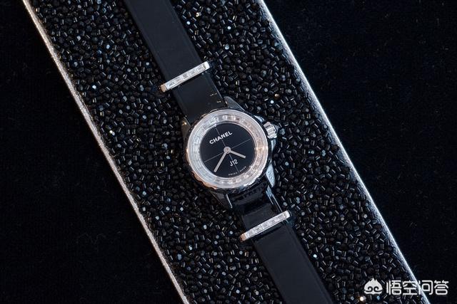 虽然镶钻的 baguette-set J12 型号已经相当完美,但是这款表却更加时髦。配有Maison Lesage 黑玻璃珠刺绣的表带和一对钻石带扣极尽奢华,光是这别致而诱人的外形就足以让人心潮澎湃。