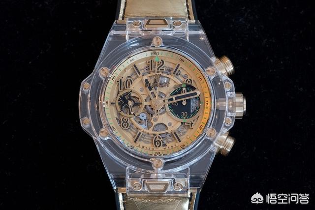 这款表无可挑剔。表壳通体由蓝宝石水晶制成,按键与螺丝皆用黄金打造,采用镂空表盘设计,子表盘里运动的秒针宛如博尔特标志性的庆祝胜利的姿势。这款表甚至配有金箔表带。