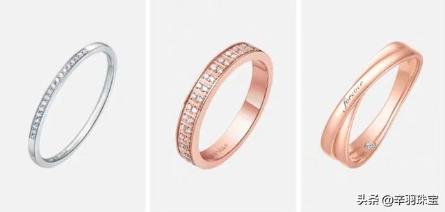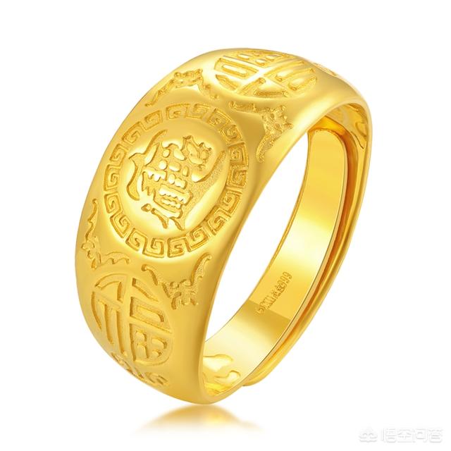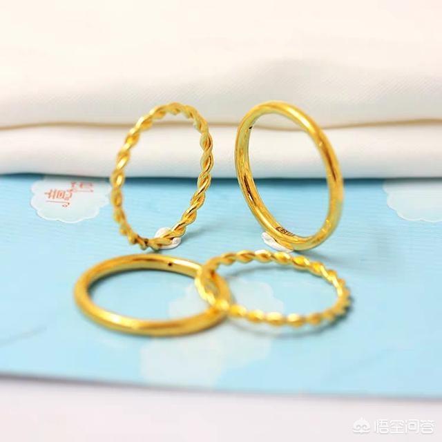黄金戒指:最传统的首饰,结婚三金饰品中的一种,颜色是天然的黄色,含金量990‰以上的才可以称为黄金戒指。以纯度高,保值性好深受很多朋友的喜爱。但是因为纯度高,硬度就低,镶嵌宝石就容易脱落,所以更适合单独佩戴。