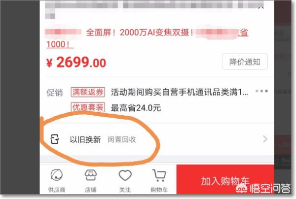 1、首先我们打开京东APP。 2、然后在搜索栏找到自己心仪的产品并点进商品的主页面。 3、然后我们找到以旧换新并点击,把自己的手机型号添加进去。 4、接着在搜索栏找到自己旧手机的产品型号。 5、找到后会进行一个对旧手机的硬件评估,按实际情况选择好后,点击确定。如图所示。 6、系统会自动评估旧手机的价值,然后把旧手机寄送到指定的地点检验成功后,买新手机的钱就可以用旧手机评估好的价格抵折扣。 |