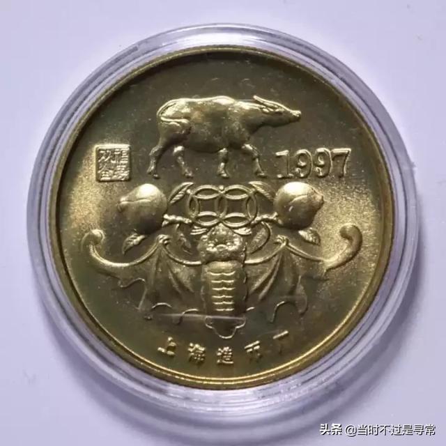 你说的应该是“97年上海造币厂牛年纪念章”,沒面值的不能叫币,只能称为纪念章。这类纪念章收藏的人不多,故市场价值不高,一般就值一二十块钱。