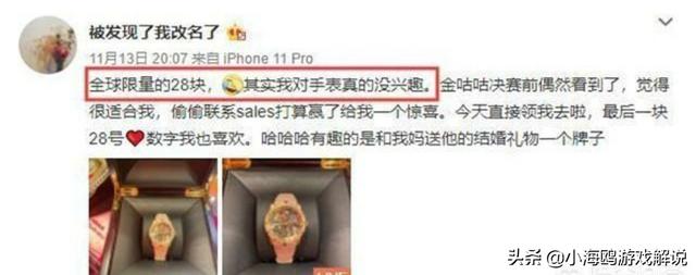 职业选手到底多有钱?Doinb决赛戴的手表全球限量8支,价值百万?