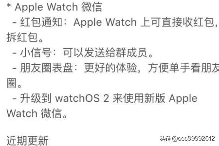1、看到这个版本更新显示的内容了吗?小信号:可以发送给群成员; 喊一个人,从未如此简单! 好奇心想让我去寻找这个究竟是啥玩意,真的有这么简单吗? 2、小信号是通过apple watch发送的,毕竟小屏幕要讲究个方便、简单的。 3、打开apple watch更新最新版本的微信。 4、点击要呼唤的人头像。 5、然后手机微信或apple watch 微信的那一头会出现“正在找你”,点击“√”就能直接对话了。 6、还可以进行一些设置。 |