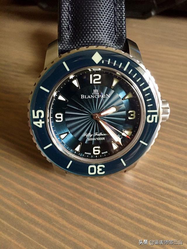 连结战斗潜水员。黑色面盘上清晰的数字七,代表水下七米。这是海军潜水战斗员的减压极限。单向旋转表圈覆盖半弧形的蓝宝石水晶,保护表圈在运动中无意之间撞击、刮伤,这也是宝珀当年的创见。