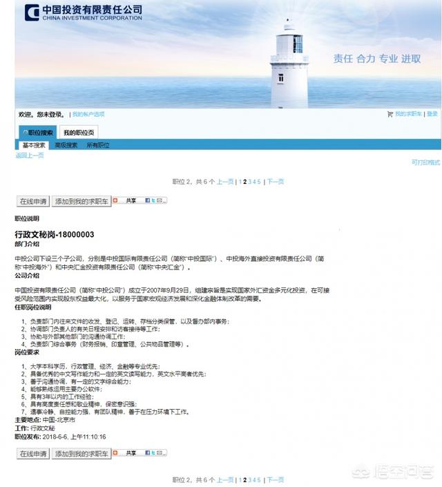 先看行政文秘岗,岗位要求很简单,本科学历就满足条件,行政管理、经济、金融等专业优先,然后还有6条其他要求,从入职的女同学的学历来看,该行政文秘岗最后还是相当看重求职者的英语水平,所以,才有了绍兴文理学院这位女同学的成功入职。虽然期间不知道PK掉多少其他名校的竞争者,但她能从中脱颖而出、实为不易,毕竟中投在国内顶尖名校、顶尖教授眼里还是非常难进的。