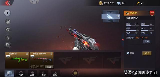 2)剑齿虎,剑齿虎是比较早期的武器了,原型是AN94,特点是威力大,弹道稳。经过这么久的版本变迁,依旧能在pvp中有一席之地。