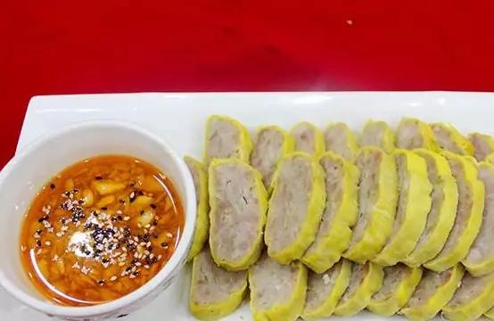 封丘卷尖味香清爽利口,油而不腻,切片,切葱丝放上去,放入调料,味精、豆腐乳等,上蒸笼蒸熟炸至金黄色即可