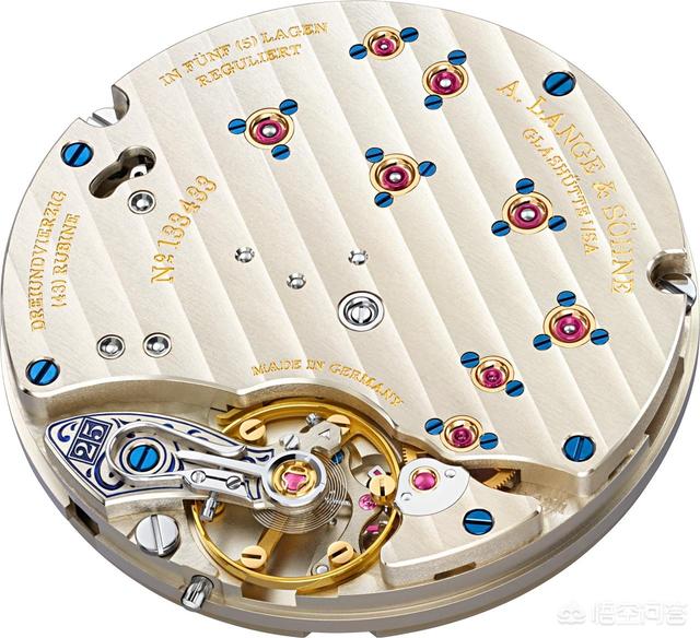 表壳以内的就是L102.1 陀飞轮机芯,它把停秒及归零功能集于一身,这两项都是A. Lange & Söhne 引以自豪的功能系统。A. Lange & Söhne 最早于1997 年推出的Langematik 中采用归零功能,它也是品牌在1994 年复兴后推出的首枚自动上条腕表。备有停秒功能的基础款腕表不少,但能做到秒针归零的却不多,其好处是有助于更精确的校时,可见A. Lange & Söhne 的制表心思。