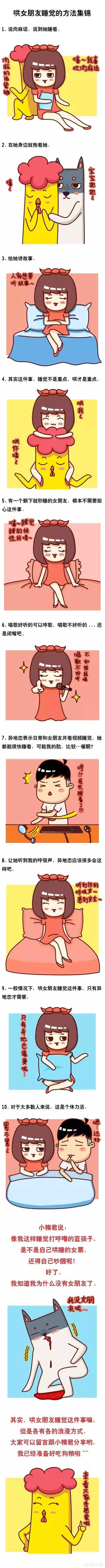 这些哄她睡觉的方法是根据她的性格和生活方式去得出的,并不适合大众,但是我相信你有我的用心程度,能大概猜的透她的所想和所需,也能做到哄你的女神尽快入睡,但自己可要先做出表率哦。