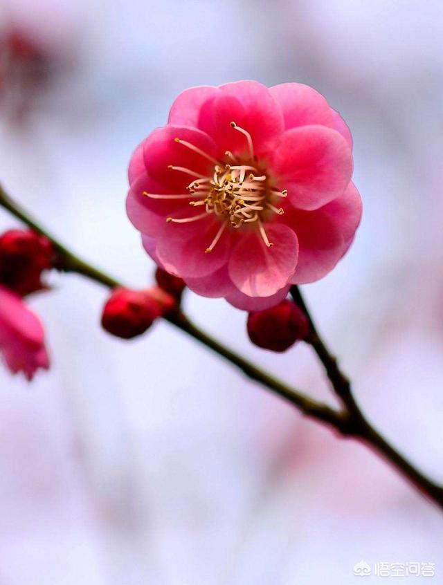 红梅点点高枝绽,凌寒迥衬碧蓝天。