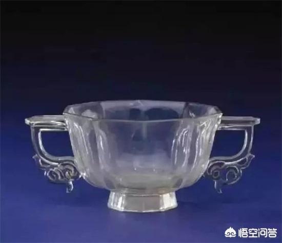上图为故宫收藏的清代水晶双耳十角杯,足底刻“乾隆年制”四字篆书款。