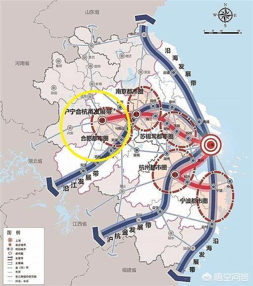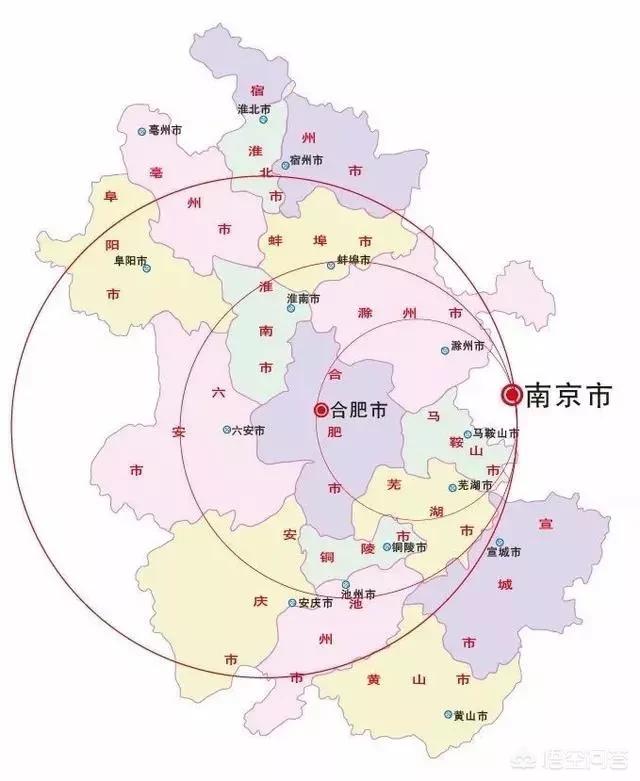 长三角的龙头是上海,两翼中心是南京和杭州。①南京经济圈最早形成,也是最成熟最紧密的,目前包括江苏的镇江、扬州和淮安,安徽的滁州、芜湖、马鞍山和宣城。②杭州经济圈早期规划和宁波联手发展,目标东和南,今年已规划融入衢州和安徽黄山市,目标调整为杭州向西拓展,东面由宁波主打。③合肥经济圈最早是行政摊大饼式的,由于实力不够,现已放弃争夺南京经济圈成员,改向皖北辐射,目前主要成员是六安和淮南。④安庆、池州和铜陵受合肥影响有限,正在探讨三市一体化。这样安徽整个皖南地区已被瓜分完毕。