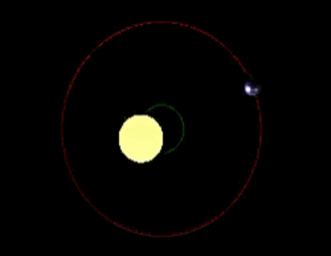 我们整个太阳系也有一个共同质心,它是太阳系中所有物质的质量中心,太阳、地球以及其他所有的行星都是绕着这个质心运动。不过,太阳系的共同质心处于不断的变化之中,它的位置取决于行星在其轨道上的位置——范围从太阳中心附近到太阳表面之外。