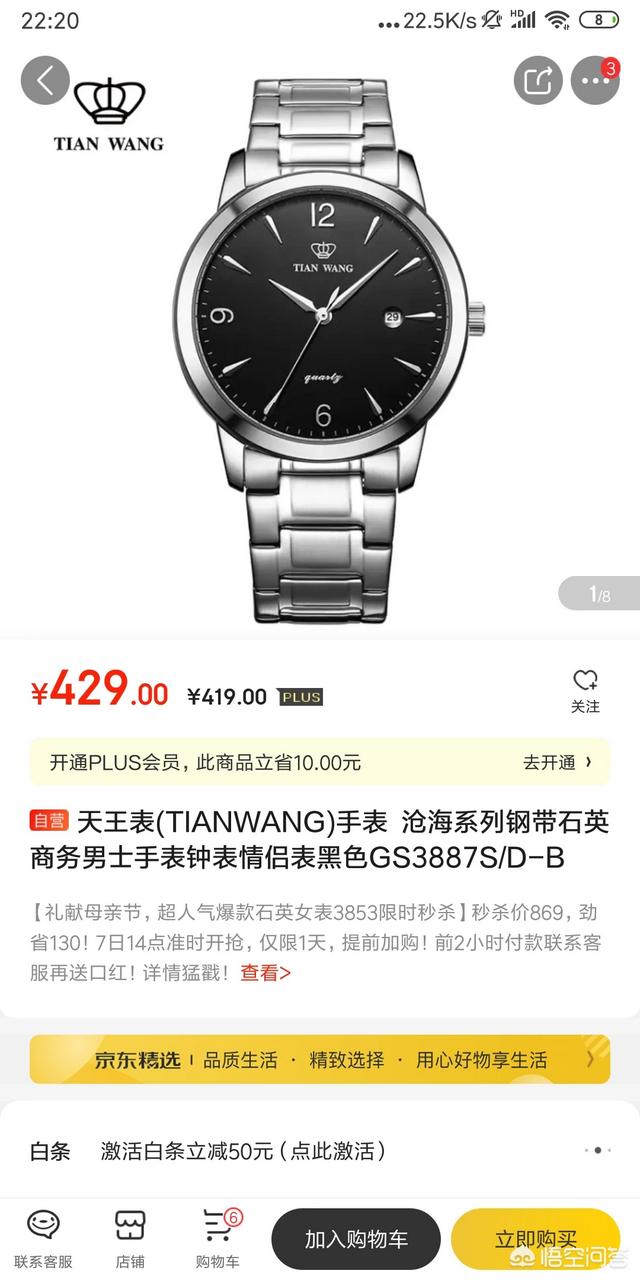 这款天王旗舰店的,淘宝售价只有399元。天王石英表,一般使用的都是日本或者瑞士的机芯,这是可以信赖的。看看这款配置,不锈钢表壳表带,30米防水,水晶蓝宝石表镜,这个价位还是可以的,只是款式比较正装。