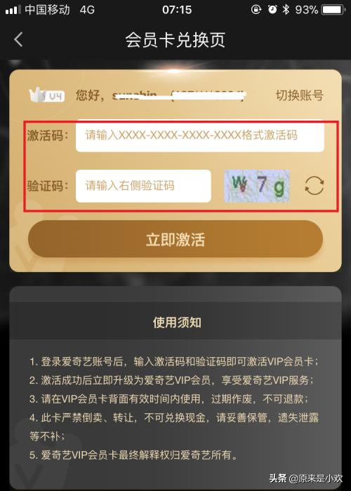 5、输入爱奇艺激活码及验证码。