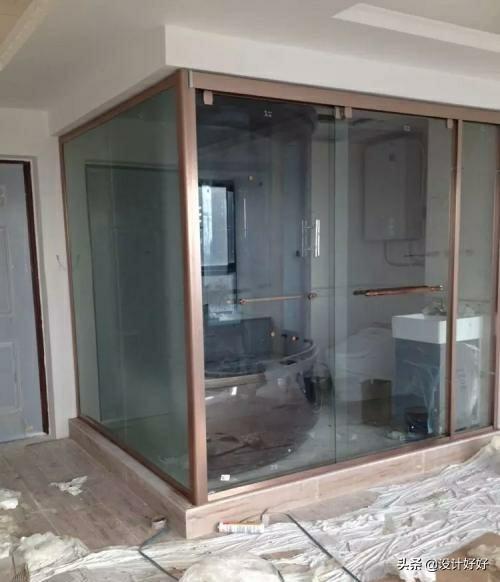 第二,可以有效解决“憋气闷气”。不做到顶部洗浴时产生的水蒸气可以通过上方流向其它区域,不会让水蒸气在一个区域内集聚,让视觉更加清晰“不受气”。第三,方便换了材料。忘了拿换洗衣服,扩洗衣用品,也可以让其它人员通过上方区域取衣换物。第四,降低成本,方便安装。上方区域的材料成本就可以节省出来,移门越大安装难度越高,而且还不利于搬运。