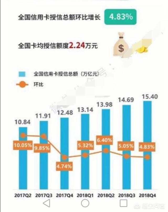 截止2018年末,中国信用卡授信总额达到了15.4万亿,这个额度与2017年末相比,同比增长23.4%。