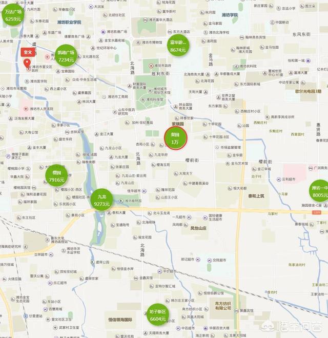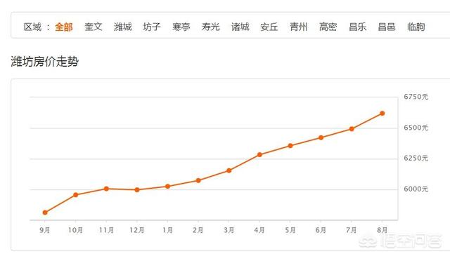 潍坊市的房价的话总体的比较均衡潍坊市中心的话9000到12,000左右,潍坊市高新区的话大概是8000到9000左右,潍坊市奎文区大概是7000到9000潍坊市坊子区大概是6000左右,潍坊市滨海区大概是4000左右,基本上这个我去山下的价格都是在6000左右的价格优先发展比较薄弱的地方,应该是在5000左右,但不会低于4500这样价格来说的话还是比较低的潍坊的房价,在全省全国都有水漂跌了没有什么竞争优势。