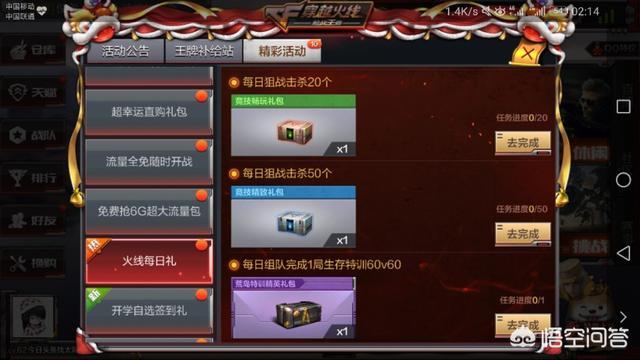 ――荣耀王者DJMAX,用心原创,只为给你想要的答案!―― CF手游,不充钱一样可以愉快的玩耍。但是前提你有金币和钻石啊,其实所有手游都一样,用游戏币或钻石购买虚拟道具和周边产品,比如武器…… ①通过每日签到得钻石:每天登录游戏,都可以领取不等数额的钻石,累积增加,大概连续七天也可以领取大几十的钻石。 ②系统的任务:这个也是手游里比较常见的,比如王者荣耀、CF都有,每天几把排位,MVP,杀敌多少次……完成啦有钻石之外,还有小礼盒,打开也会有几率得到钻石奖励。 ③节假日活动:每逢节假日,游戏都会举办各种活动,抽奖、或者积攒某样东西进行兑换,这样下来也有不错的收益。 ④关注游戏APP,不止穿越火线,很多游戏都有APP,通过APP获得的钻石,一个星期也有几十的钻石。 ――如果大家有不同的观点,欢迎在下方评论区留言。觉得不错的朋友请点赞,喜欢的朋友请点关注!―― |