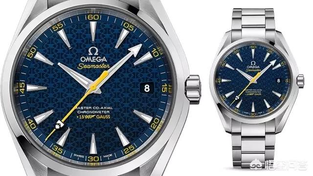 手表设计灵感来自于邦德家族的盾徽。盾徽密布于蓝色表盘之上,形成充满动感的图案。在鲜艳的柠檬黄秒针靠近尖端位置,也直接使用了盾徽。表背镌刻了限量编号,同时注明防磁"> 15'007"。搭载具有革命性的欧米茄8507至臻同轴机芯。背部的自动陀被设计成如同枪膛线一样,在最中心的位置刻上了詹姆斯邦德的名字,非常骚气!