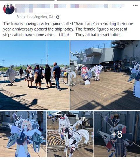 2019年8月16日,《碧蓝航线》在美服上线一周年,为了庆祝舰娘在美国的生日,退役美国海军战列舰“衣阿华”号隆重着装了一下,并开炮庆祝了她的生日。