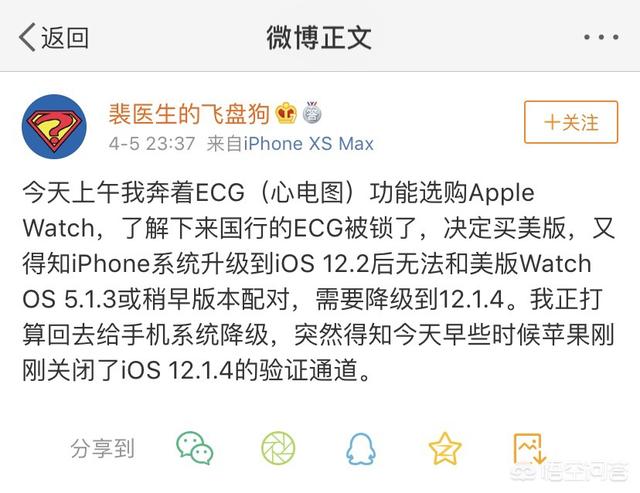 这就意味着,如果你的手机升级系统了,手表就不能解除配对,否则再次配对以后ECG不可用,如果你想把手表匹配在别的手机上,前提也是没有升级到ios12.2。
