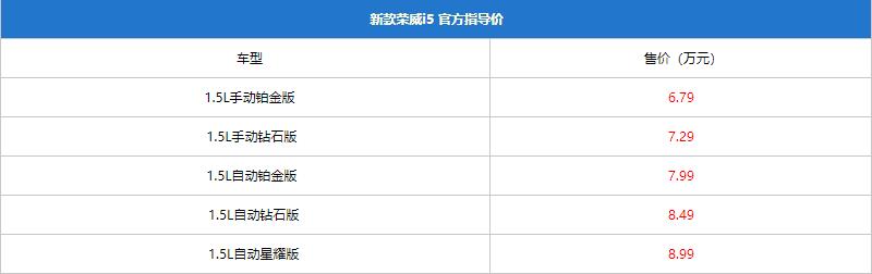 i5的厂商指导价是6.89万元到11.59万元之家,其实说道价格的话i5是和捷达威驰一个级别的,全系搭载着两款发动机,分别是1.5L的和1.5T的发动机,匹配的是双离合和无级变速箱。其中1.5L的有6款车型,最便宜的三款车型是手动挡的,1.5L车型的实际的价格在5.99万元到8.49万元之间,而搭载着1.5T发动机的有三款车型,都是自动挡的,实际的价格在9万元到11万元之间。