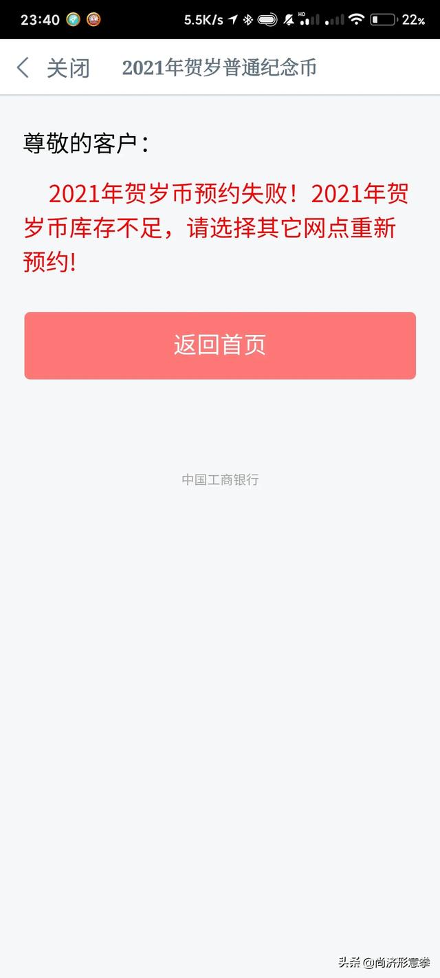 牛年纪念币预约用工行是个错误,他们就没有做好准备工作,到了时间根本进不去,说明他们的系统有问题。感觉还是农行做的好,前期可以查询当地银行,可以到时间进入系统,抢不到是手慢。工行就不是,系统进不去等进去了没了。 |