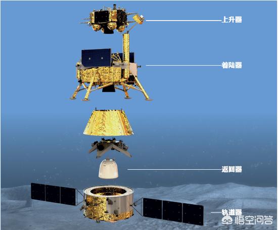 本次发射的嫦娥5号分为:轨道舱、返回舱、降落舱以及上升仓。