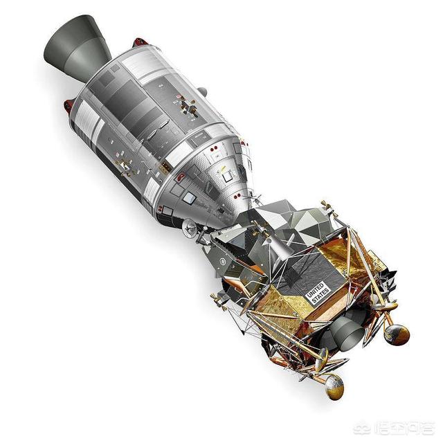 美国阿波罗登月计划的月球飞船分为三部分:指挥舱、服务舱和登月舱。